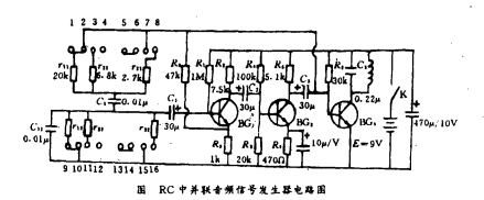 診斷器是一個(gè)RC串并聯(lián)網(wǎng)絡(luò)低頻振蕩器,經(jīng)LC諧頻放大的音頻信號(hào)發(fā)生器見圖,圖中BG1、BG2、BG3均為3DG6D。