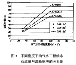 4、不同密度下的油、氣、水總流量與渦輪響應(yīng)的關(guān)系