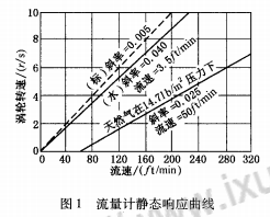 圖1是哈里伯頓公司高靈敏度流量計靜態(tài)響應(yīng)曲線。從圖1可以看出,該儀器在水中的啟動速度為3.5ft/min,在氣中的啟動速度為50ft/min。哈里伯頓公司高靈敏度流量計在水中的測量精度為lft/min,由此得出該儀器在水中測量精度與啟動速度的關(guān)系為1:3.5。據(jù)此估算,該儀器在氣中的測量精度約為50/3.5=14ft/min。進(jìn)而得到,此儀器在水中的測量精度與氣中測量精度的比值約為1:14。