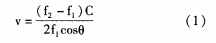 式中:v**體速度;f一晶體T1的發(fā)射頻率;f2一晶體R1接收的頻率;θ一超聲波束與流體流向之間的夾角;C一聲速。