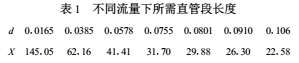 當δ=0.2%時,不同流量下所需直管段長度見表1。