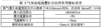 在啟動氣體渦輪流量計時,應(yīng)保持相對較慢的加壓速度,如果過快的加壓將有可能損壞氣體渦輪的葉片,氣體渦輪流量計啟動的各項指標(biāo)要求如表2所示。