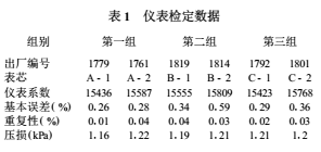 按照規(guī)定,dn80氣體渦輪流量計(jì)出廠前總是逐臺(tái)進(jìn)行標(biāo)定,并給出儀表系數(shù)。但在現(xiàn)場,尤其是高壓場合,渦輪表損壞的事時(shí)有發(fā)生,維修人員經(jīng)常將表芯(包括葉輪和軸承在內(nèi)的組件)更換,而不是整臺(tái)儀表更換,換下的表芯帶回維修(在現(xiàn)場不允許進(jìn)行長時(shí)間的維修工作)。由此產(chǎn)生了這樣的疑問:整臺(tái)儀表更換與只更換表芯在流量計(jì)的性能方面,尤其是儀表系數(shù)會(huì)有什么變化?儀表系數(shù)究竟和哪些因素有關(guān)?帶著對(duì)這些問題的思考,我們隨機(jī)抽取了6臺(tái)儀表(口徑均為DN80),每兩臺(tái)儀表組成一組,共3組進(jìn)行對(duì)比試驗(yàn)。6臺(tái)儀表檢定數(shù)據(jù)列于表1。