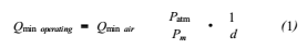 式中:Qmin operating為工作條件下的*小流量;Qmin air為工廠給出的*小流量;Patm為標(biāo)定時(shí)的壓力,通常為當(dāng)?shù)卮髿鈮?;Pm為工作條件下的壓力(絕對(duì)壓);d為被測氣體的相對(duì)密度。