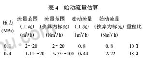 針對(duì)上述實(shí)例。欲選擇合適的儀表進(jìn)行計(jì)量。則根據(jù)所給的條件*先進(jìn)行簡單的流量換算,將標(biāo)況流量400~4800Nm³/h換算成工況流量約為(3613~436)m³/h,常用流量為318m³/h。