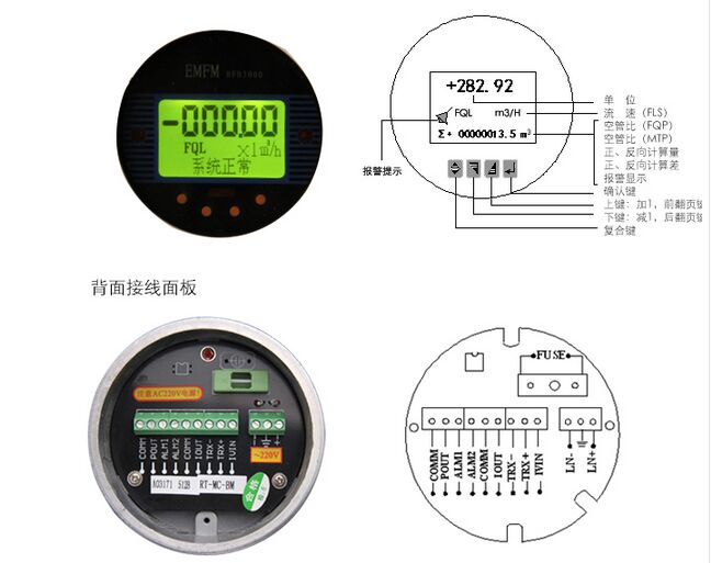 儀表顯示:高清晰度背光LCD顯示(126 x 48 點(diǎn)陣),可同時(shí)顯示瞬時(shí)、累積流量等信息與相關(guān)單位,中文/英文菜單支持