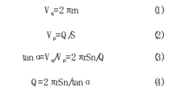 如果渦輪上的葉片與渦輪軸線的夾角為α,當流體通過時,就有一個力作用在葉片上,這個力與流量、流體的密度及流速有關。則渦輪轉速n與體積流量Q的關系推導如下: