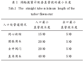 由式(5)可計算出渦輪流量計在校驗和使用時配套直管段的量小長度(見表1):