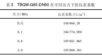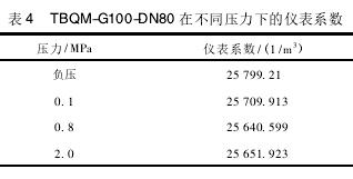 計(jì)算所得的不同壓力下儀表系數(shù)如表3和表4所示。
