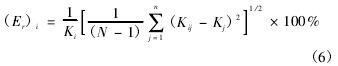 隨著工作壓力的變化,渦輪流量計(jì)儀表系數(shù)的變化很小。參考JJG1037—2008《渦輪流量計(jì)檢定規(guī)程》計(jì)量檢定規(guī)程中流量計(jì)的重復(fù)性的計(jì)算方法,可以定義不同壓力下渦輪流量計(jì)儀表系數(shù)的重復(fù)性為: