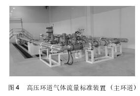 高壓環(huán)道氣體流量標(biāo)準(zhǔn)裝置,如圖4所示,該裝置可在實(shí)際工作的壓力狀態(tài)下檢測流量計(jì)的性能,主要部件都來自德國,是國內(nèi)*臺閉環(huán)式高壓氣體裝置。其流量范圍為1~2500m3/h,檢測口徑為DN20~DN250,工作壓力范圍為0.1~2.0MPa,不確定度為0.33%。目前,我司的高壓環(huán)道裝置已將量傳到歐洲VSL國際標(biāo)準(zhǔn)實(shí)驗(yàn)室,也正在申請國內(nèi)取證和建標(biāo),并且正在和浙江省院以及中國計(jì)量院做實(shí)驗(yàn)對比工作。采用該套裝置進(jìn)行壓力為0.1MPa、0.8MPa和2.0MPa的檢定。