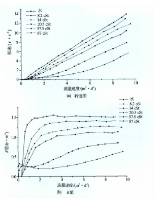 圖1齒輪油專用流量計(jì)對(duì)不同茹度條件的響應(yīng)轉(zhuǎn)速圖和K值