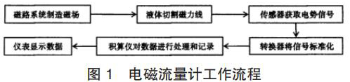渦輪計量表的產(chǎn)生主要是基于法拉*電磁感應(yīng)定律。在渦輪計量表的應(yīng)用中,磁路系統(tǒng)會在流量計運(yùn)行過程中逐步出現(xiàn)直流磁場與交流磁場,該磁場的產(chǎn)生為后期的測量提供了良好的前提條件,營造了測量所需的磁場環(huán)境,因此,在渦輪計量表應(yīng)用時,一旦被測液體在導(dǎo)管中經(jīng)過該磁場環(huán)境時,必然會產(chǎn)生一定的切割磁力線運(yùn)動,在這種情況下,電*傳感器就會發(fā)揮其作用,將導(dǎo)管內(nèi)的流量轉(zhuǎn)換為感應(yīng)電勢信號,隨后此轉(zhuǎn)換形成的信號逐步被傳遞給轉(zhuǎn)換器。而轉(zhuǎn)換器更是可以將所獲得的流量信號等加以處理,通過分析、對比等,轉(zhuǎn)換器會將該信號變?yōu)闃?biāo)準(zhǔn)信號,隨后將該信號輸出給積算儀,進(jìn)一步進(jìn)行信號的處理,這些處理以后的信號*終會在渦輪計量表的儀表中顯示,呈現(xiàn)*終的流量測量結(jié)果,其基本的流程如圖 1 所示。