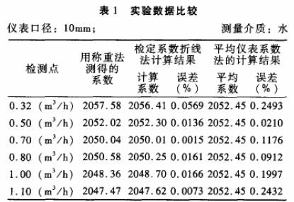 被檢儀表:公稱通徑分別為10mm和15mm的渦輪流量傳感器各一臺;檢定裝置:靜態(tài)稱重法標準水流量檢定裝置,系統(tǒng)精度+0.2%。分別采用常規(guī)的平均儀表系數(shù)法和檢定系數(shù)折線法進行標.定,并與作為標準的靜態(tài)稱重法的檢定結果進行比對,結果見表1.表2。