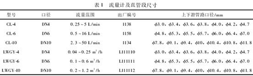 研究中選擇常用的CL系列消防水流量計和LWGY系列消防水流量計進行試驗。分別選取DN4,DN6和DN10口徑的流量計,且均為0.5級。