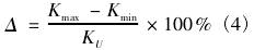 式中:Kmax為同**量點下不同工況下儀表系數(shù)*大值;Kmin為同**量點下不同工況下儀表系數(shù)*小值。