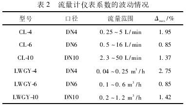 其中,0.75<K<1.2。在此基礎(chǔ)上,每次試驗過程中,根據(jù)流量計的流量范圍,選取9個流量點,每個流量點校準3次。流量計的銘*信息及直管段口徑選擇詳見表1。