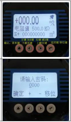 1.擰開補水流量計前蓋按鍵說明(由左至右):