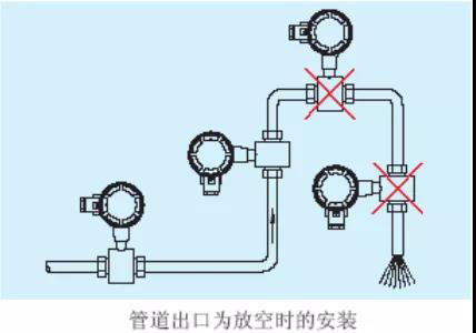 當出口為放空狀態(tài)時,傳感器不應安裝在管道放空之處,應安裝在較低處。傳感器安裝在管道下方處時,應保證傳感器內(nèi)被液體充滿,不能出現(xiàn)空管狀態(tài)。