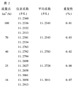 對(duì)與前面例子相同的渦輪流量傳感器進(jìn)行的另一次檢定,采取了上述的隔離措施,檢定數(shù)據(jù)見表2。