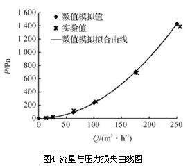 根據(jù)圖4中壓力損失隨流量的變化趨勢(shì),可以將流量與壓力損失之間的關(guān)系擬合曲線為二次多項(xiàng)式,其表達(dá)式為
