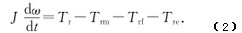 式(2)中:J—葉輪的轉(zhuǎn)動(dòng)慣量;t—時(shí)間;ω—葉輪的轉(zhuǎn)速;Tr—推動(dòng)力矩;Trm—機(jī)械摩擦阻力矩;Trf—流動(dòng)阻力矩;Tre—電磁阻力矩。