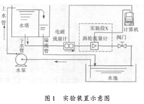 實驗是在天津大學天津市過程參數(shù)檢測與控制重點實驗室的水流量標準裝置上完成的,實驗管徑為100mm,圖1為實驗裝置示意圖。