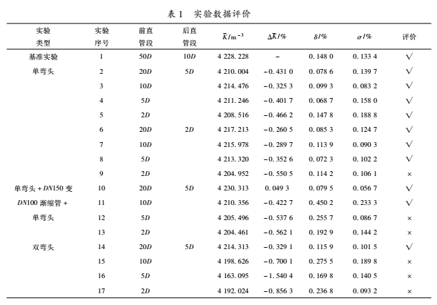 c.在后2D的數(shù)據(jù)中,前2D的結(jié)果不滿足評價準則,所以對單彎頭而言,后直管段長度為5D情況下前直管段長度至少為2D,后直管段長度為2D情況下前直管段長度至少為5D。